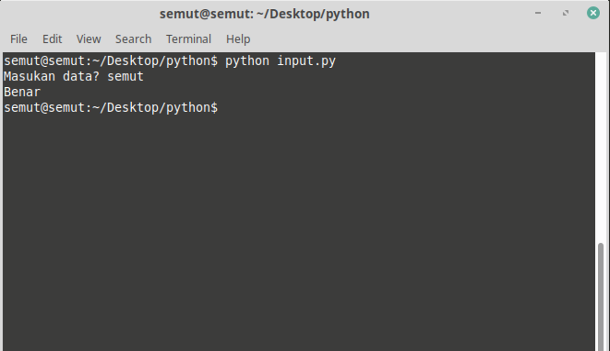 Namun di python versi 3 atau python3 fungsi inputan sudah menjadi satu yaitu input() . Sekarang kita akan menggunakan python versi satu saja untuk tutorial kali ini. Cara penggunaan inputan: